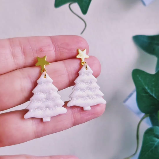 Vita glittriga julgranar med glittrande girlanger som skimrar i pastelliga regnbågsfärger. Granarna gnistrar otroligt vackert i ljuset. Bindringar samt stjärnstift av guldpläterat rostfritt stål, nickelsäkra.