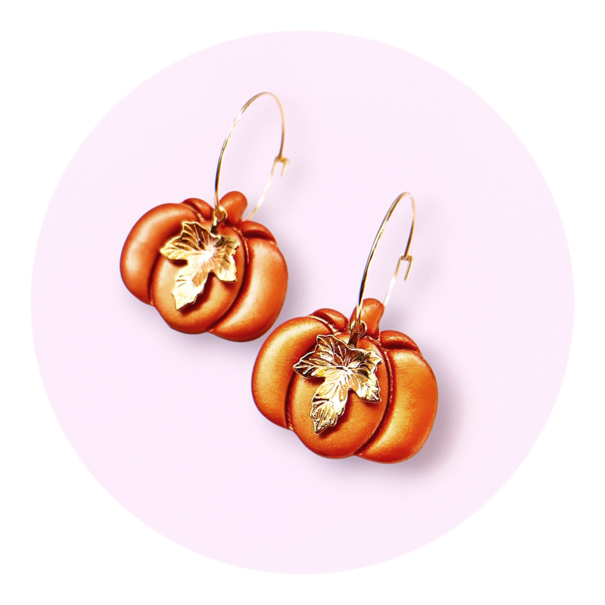 Vackra metallicskimrande pumpor med lönnlöv i guldpläterat rostfritt stål. Creoler i guldfärgat rostfritt stål, nickelsäkra.