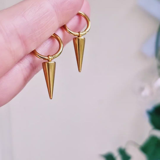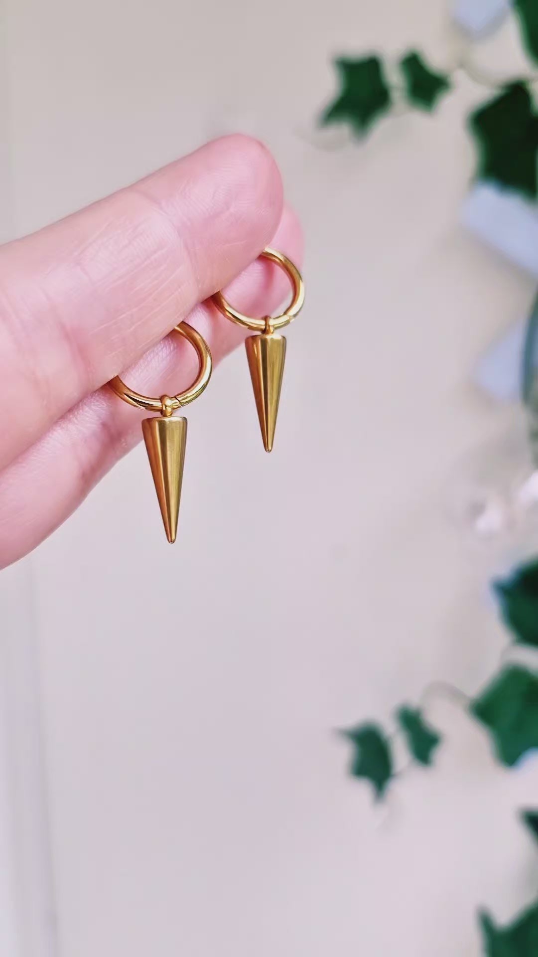 Snygga och trendiga örhängen med nitar/spikes som passar till precis allt! Perfekta till både vardag och fest. Både spikes och creoler är av guldfärgat rostfritt stål, nickelsäkra.